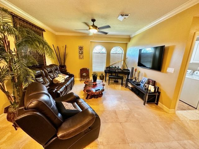 3/3.5, 2 Car Garage, Three Story End Unit Town Home with Private Elevator, Home Can Be Rented Furnished or Unfurnished, Separate Living, Dining Room, Eat-In Kitchen, Large Kitchen with Appliances: Fridge, Range, Microwave & Dishwasher, Inside Utility Room with Washer & Dryer Included,Tile Throughout Home, NO PETS, Lawn Care Included, Guard Gate Community, Community Offers Playground, Tennis, Pool & Clubhouse, Year Built: 2007/ 2182 Sqft.